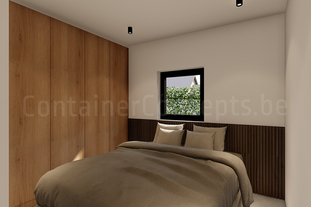 Met een breedte van 3 en een lengte van 12 meter (binnenmaten) herbergt dit ContainerConcept gemakkelijk 2 slaapkamers, een keurig afgewerkte keuken, een volwaardige badkamer, een open eet- en woonkamer, meerdere raampartijen met dubbel hoogrendementsglas (HR++) en heel wat doordachte, mooi ingewerkte opbergruimte.