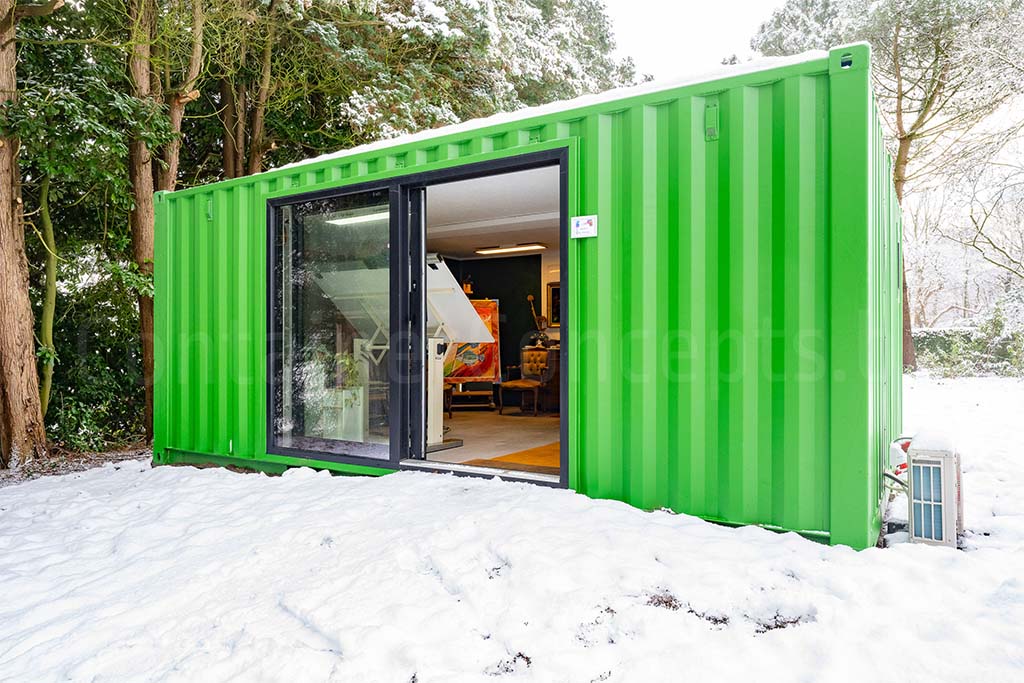 À l’abbaye de Hoogstraten, nous avons réalisé cet atelier d’art entièrement sur mesure, composé de deux conteneurs de 20 pieds placés côte à côte et fusionnés. En retirant les parois latérales sur un long côté, nous avons créé un espace de travail vaste et ouvert, bénéficiant d’un bel éclairage naturel et d’une grande liberté de mouvement.