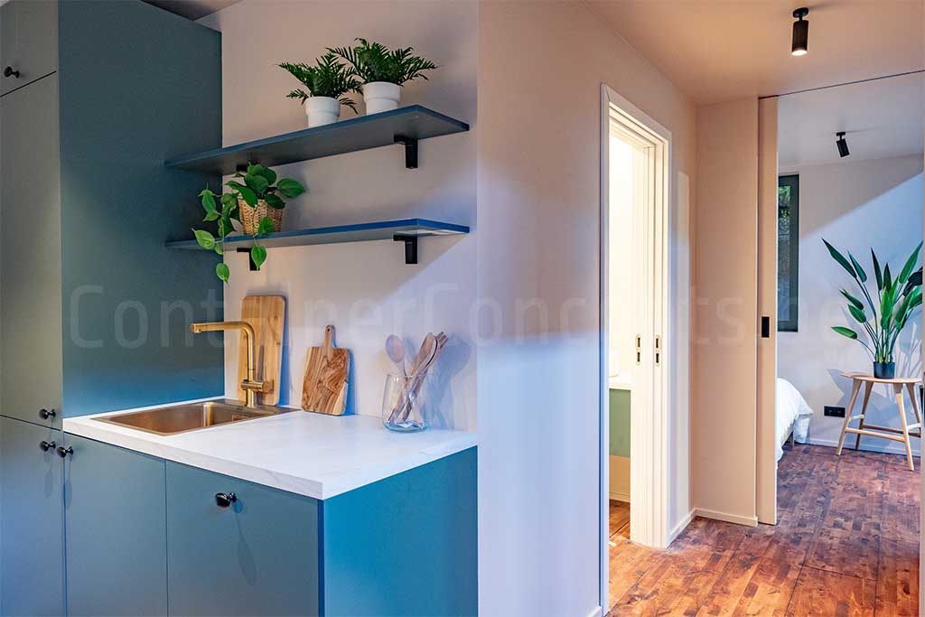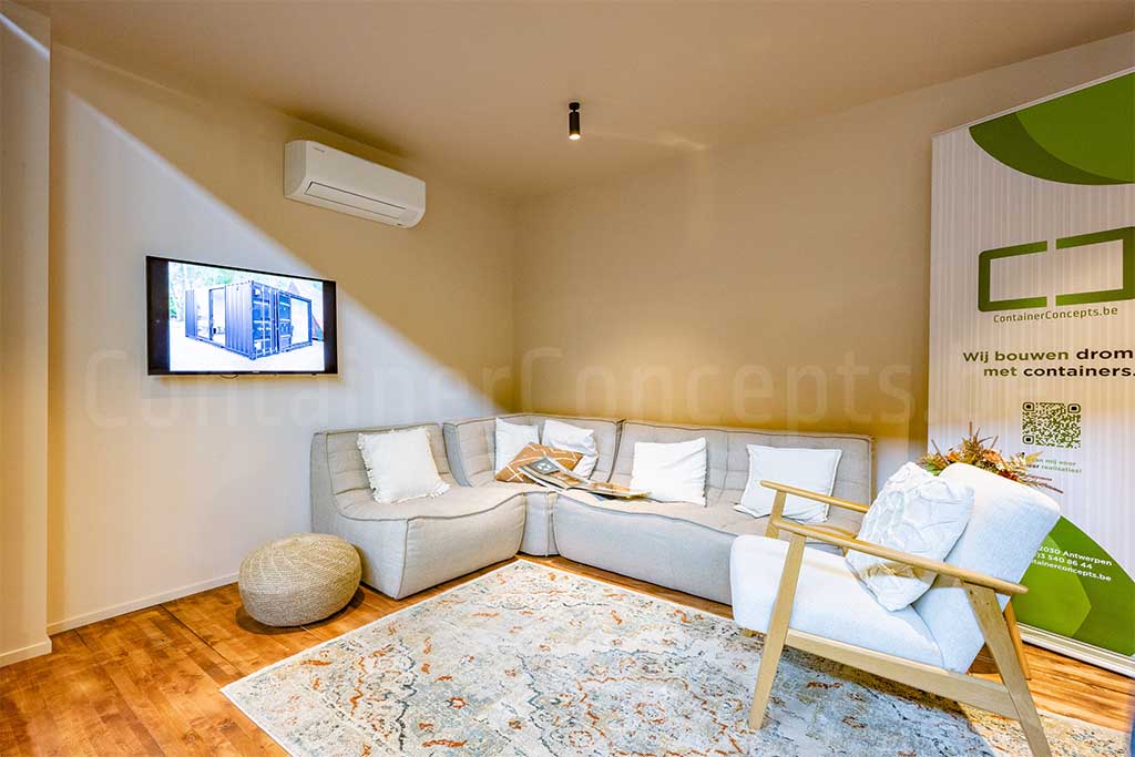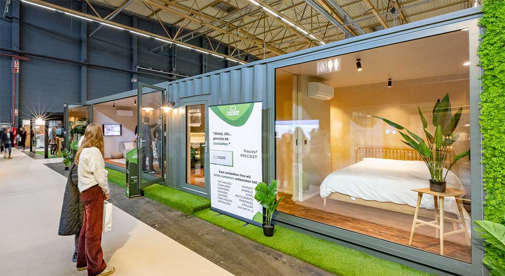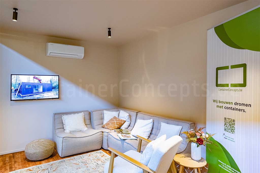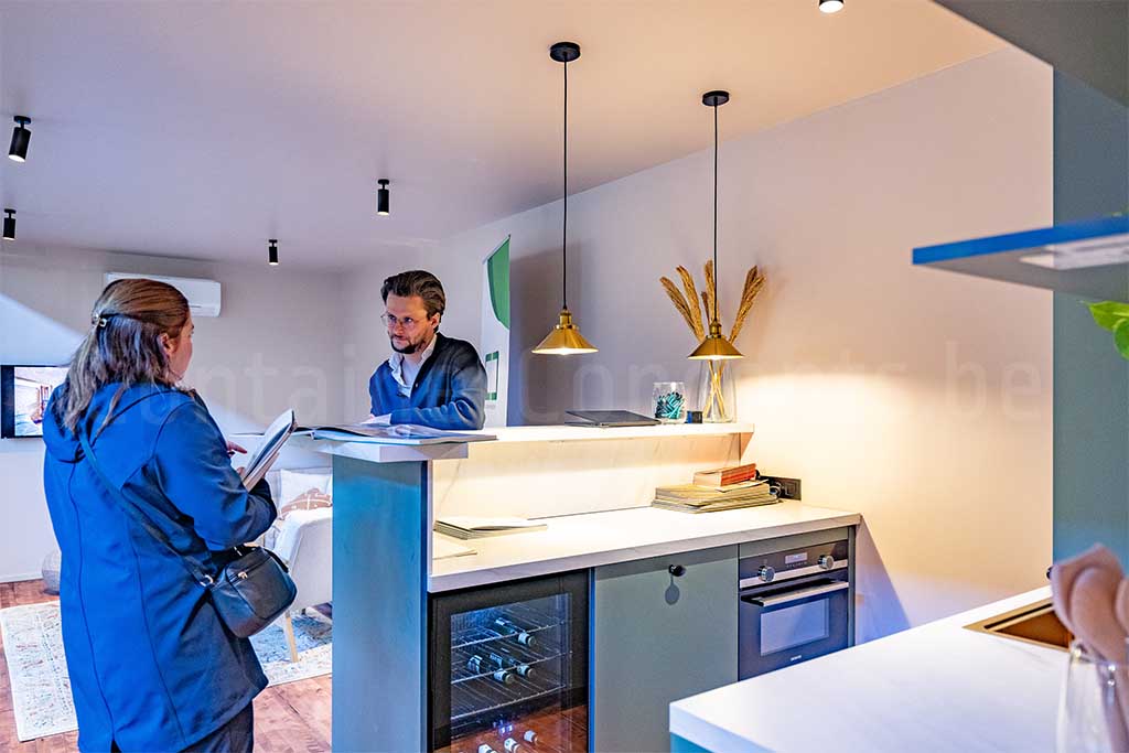 Ce concept unique de conteneur a été présenté au Bisbeurs de Gand et a ensuite trouvé un client satisfait – un exemple de la façon dont la fonctionnalité, le confort et le design peuvent aller de pair dans une solution d’habitation compacte et mobile.