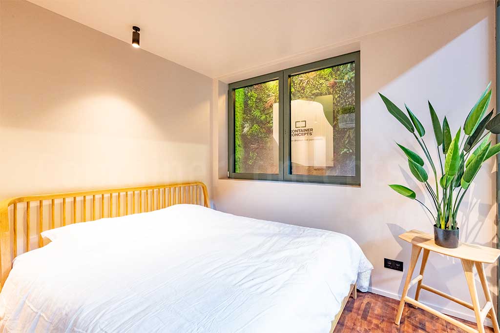 À l’intérieur, la tiny house est équipée de deux climatiseurs pour un confort en toute saison et d’un impressionnant mur pliant de 6 mètres qui relie de manière transparente l’espace intérieur à l’extérieur. La cuisine entièrement équipée comprend un refroidisseur de vin, un réfrigérateur, un congélateur, un lave-vaisselle et un évier, tandis que la salle de bains est finie avec le souci du détail et dispose d’un puits de lumière pour l’éclairage naturel.