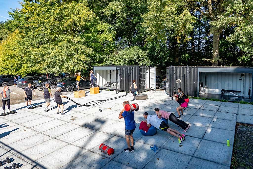 À l’extérieur, chacun des conteneurs sportifs est équipé d’un rack de fitness – idéal pour les tractions, les étirements et l’entraînement fonctionnel. À l’intérieur, il y a suffisamment d’espace pour ranger l’équipement et les deux conteneurs sont équipés d’un banc robuste pour les exercices de musculation. L’extérieur a une finition noire élégante, l’intérieur un ton gris professionnel.