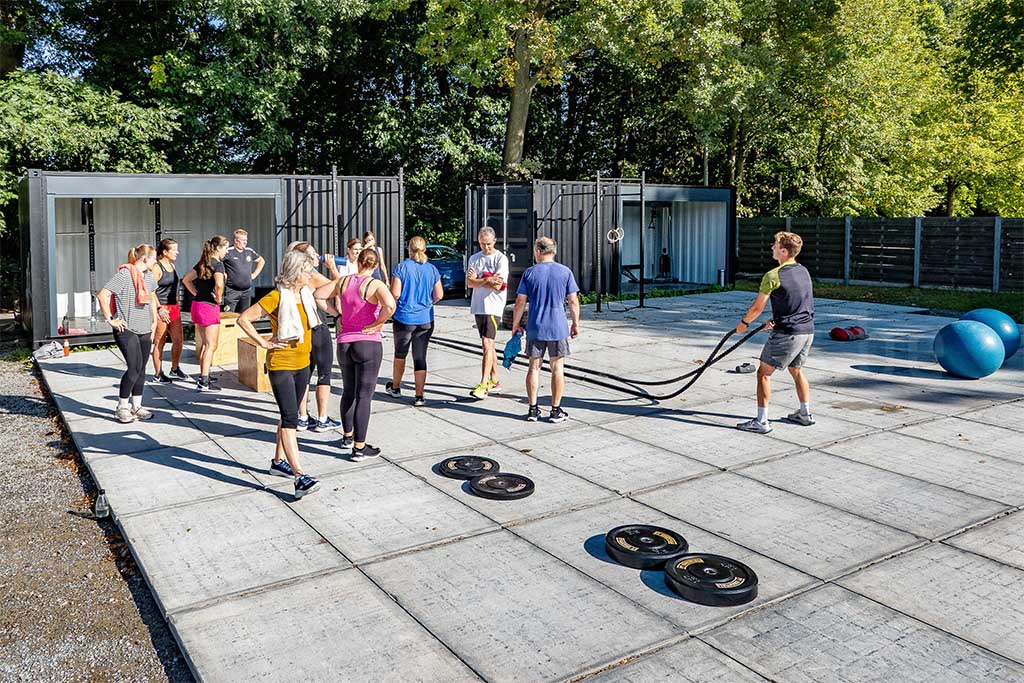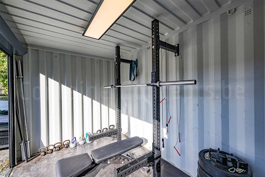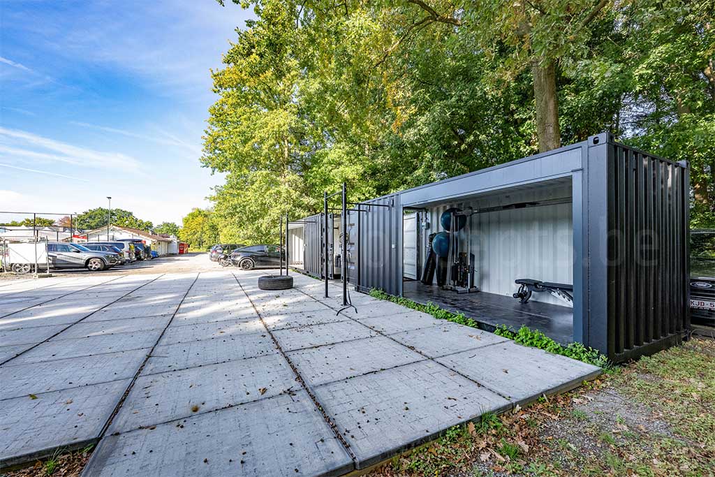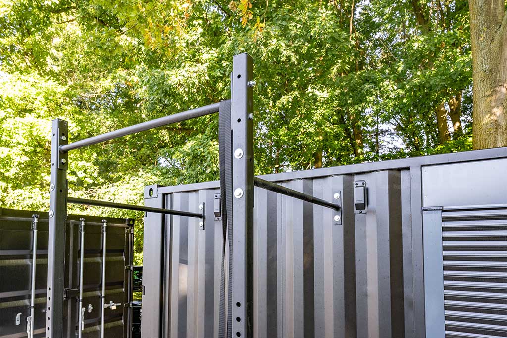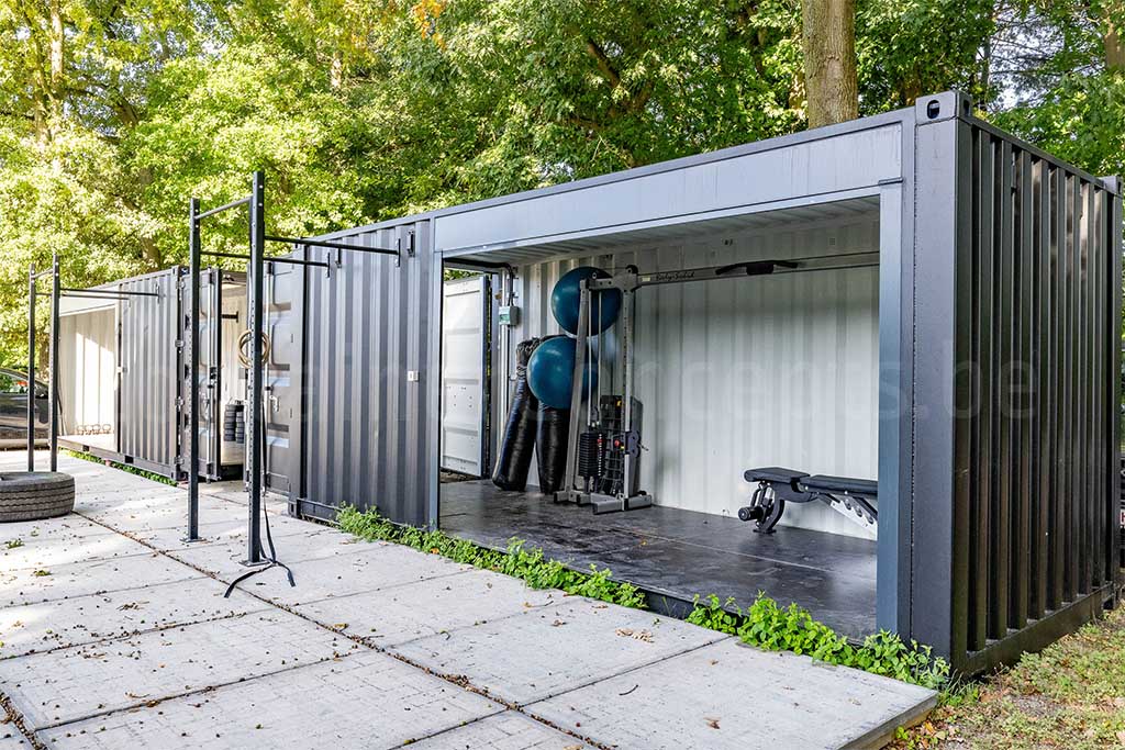 À l’extérieur, chacun des conteneurs sportifs est équipé d’un rack de fitness – idéal pour les tractions, les étirements et l’entraînement fonctionnel. À l’intérieur, il y a suffisamment d’espace pour ranger l’équipement et les deux conteneurs sont équipés d’un banc robuste pour les exercices de musculation. L’extérieur a une finition noire élégante, l’intérieur un ton gris professionnel.