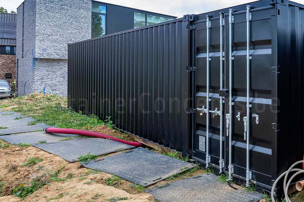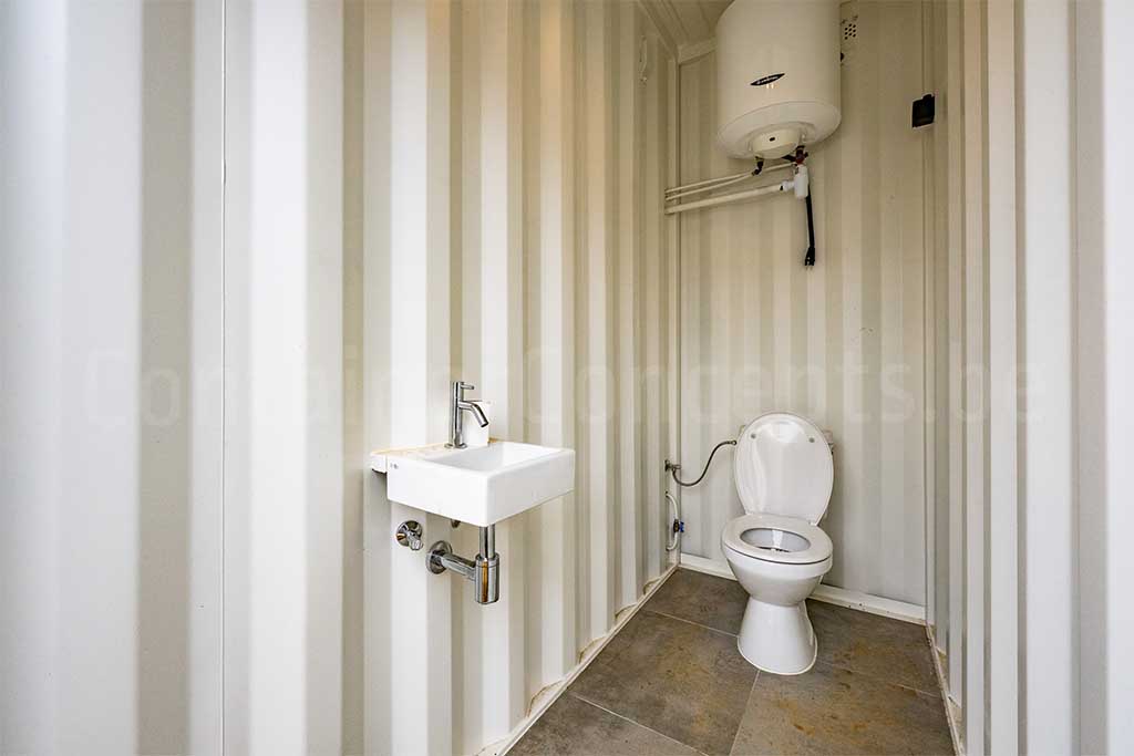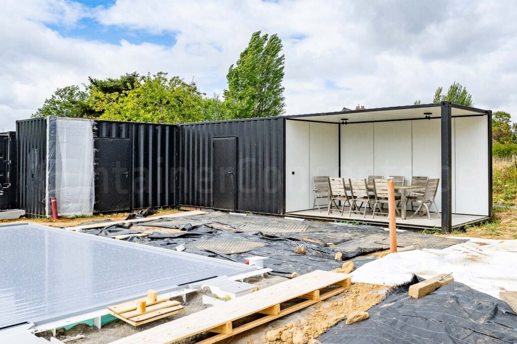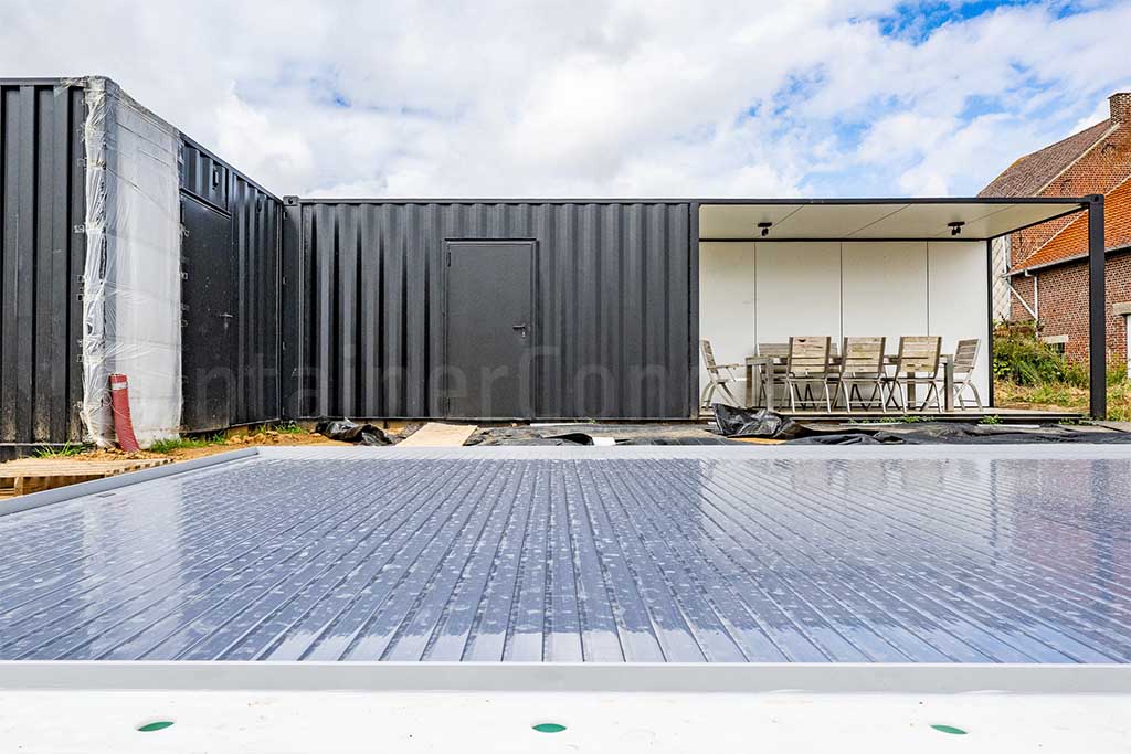 Cet agencement unique de conteneurs allie fonctionnalité et confort. La base est un conteneur de 40 pieds raccourci de 10 mètres, astucieusement divisé dans un rapport 50/50 entre le stockage et le salon. En face, un conteneur de 20 pieds est équipé d’une douche, de toilettes et d’un espace de rangement supplémentaire (4 à 2 mètres), ce qui le rend complètement autonome et multifonctionnel. La zone de stockage de 40 pieds est soigneusement isolée et finie avec des panneaux OSB, ce qui garantit sa durabilité et sa robustesse. Le salon est élégamment fini avec des panneaux et du carrelage Volkern de haute qualité, créant une atmosphère chaleureuse et invitante où la détente et les applications pratiques vont de pair. Idéal pour les projets où le confort, l’efficacité et l’agencement réfléchi sont essentiels.