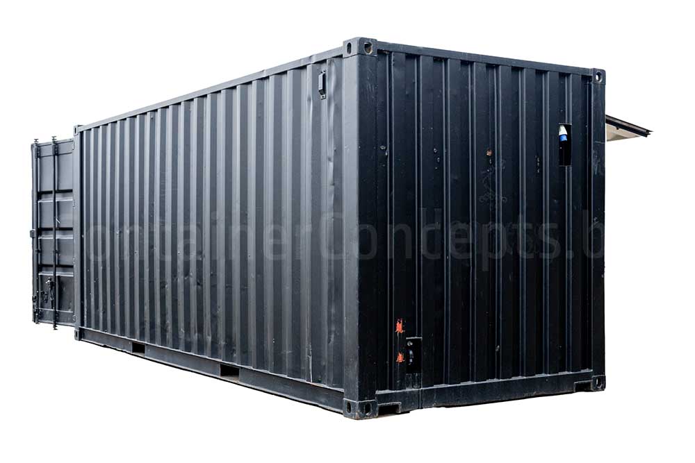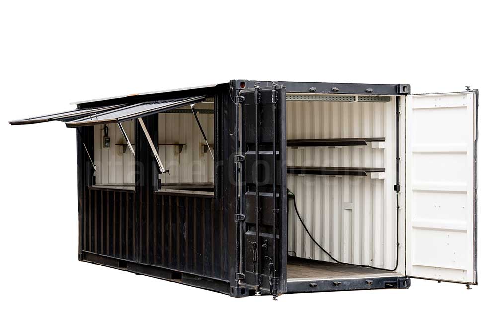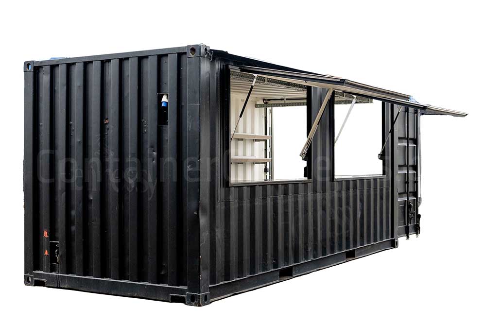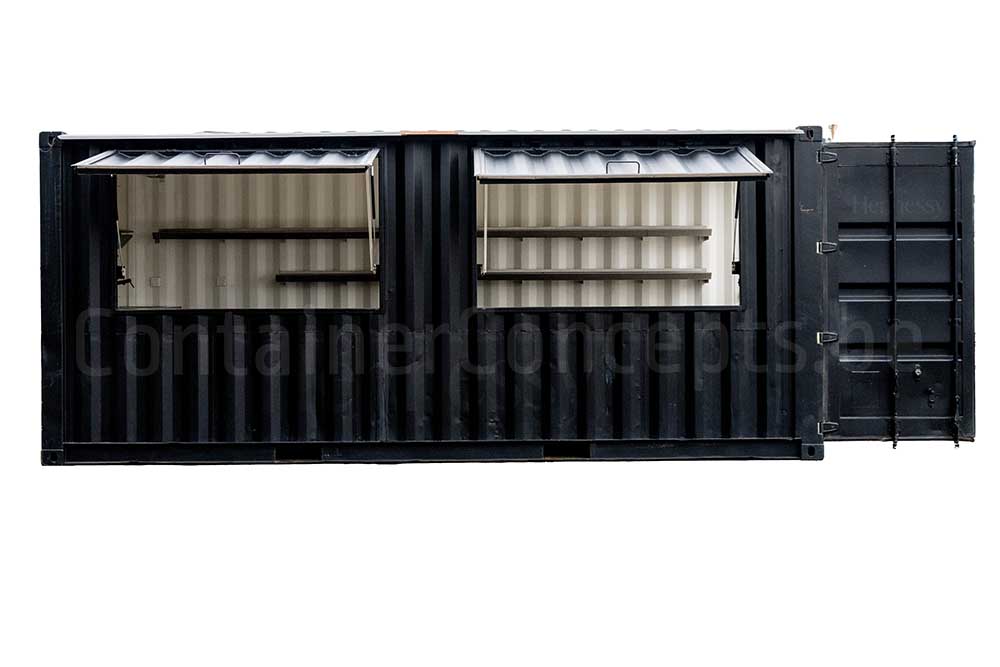 Ce conteneur maritime de 20 ft a été transformé en un véritable bar à cocktails, prêt à être utilisé lors de festivals, événements, bars d’été ou concepts éphémères. Le conteneur est équipé de larges guichets sur toute la longueur d’un côté long, facilitant le service et l’interaction avec les clients.