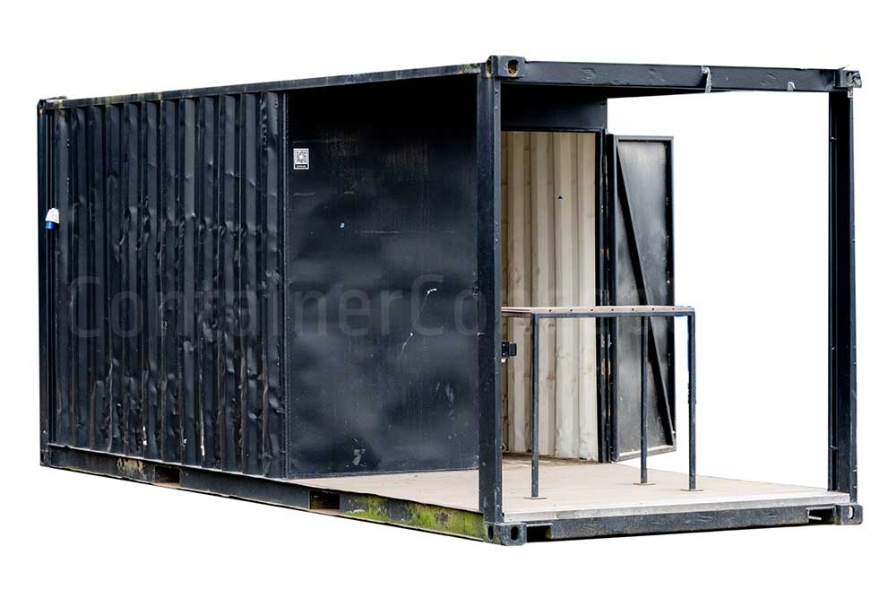 Ce conteneur de 20 ft a été ingénieusement divisé en deux parties fonctionnelles, créant une combinaison astucieuse d’espace intérieur et extérieur.
