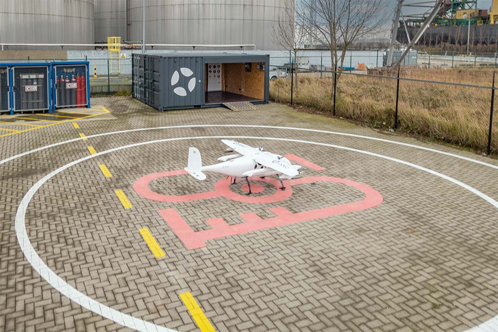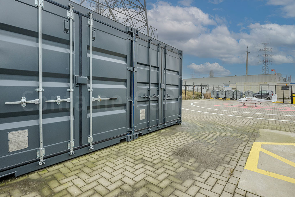 Deze modulaire containergarage combineert mobiliteit met functionaliteit en biedt een veilige, goed uitgeruste ruimte voor droneoperaties.